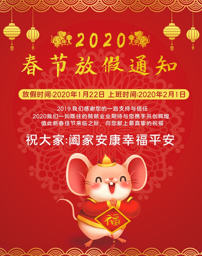 首頁 > 新聞中心 >公司新聞 >2020年春節(jié)放假通知